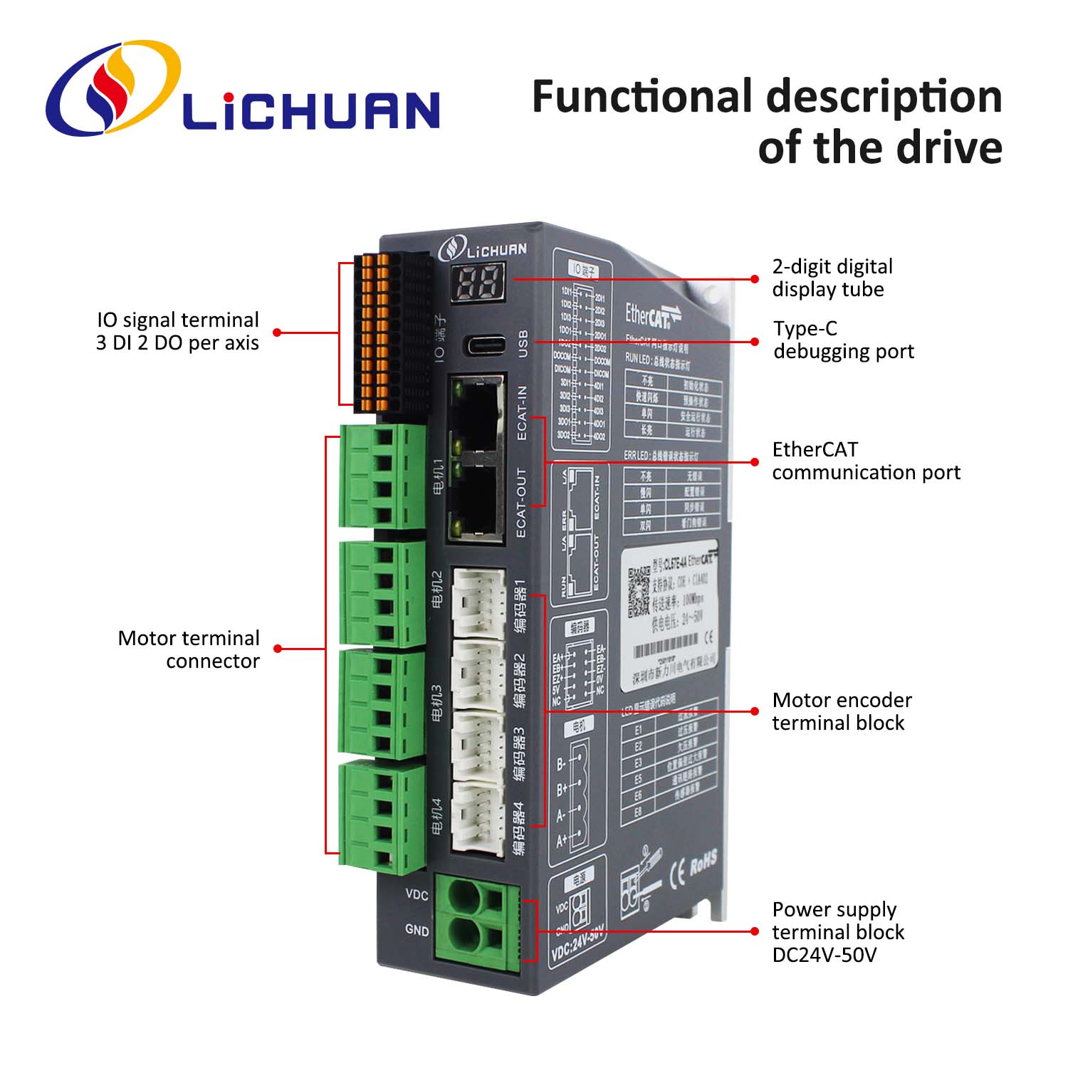 EtherCAT 2Phase Nema24 4-osni komplet gonilnikov za koračni motor z zaprto zanko DCNovi izdelki EtherCAT 2Phase Nema17 4-osni enosmerni komplet gonilnikov za koračne motorje z zaprto zanko, izdelan na Kitajskem s CE/ROHS podjetja LICHUAN®. Naša tovarna je slavni proizvajalec in dobavitelj kompleta gonilnikov koračnih motorjev EtherCAT 2Phase Nema17 4-osni DC z zaprto zanko na Kitajskem. Naš izdelek je visokokakovosten/trajen/stabilno delovanje in nizka cena. In nudimo storitve po meri.