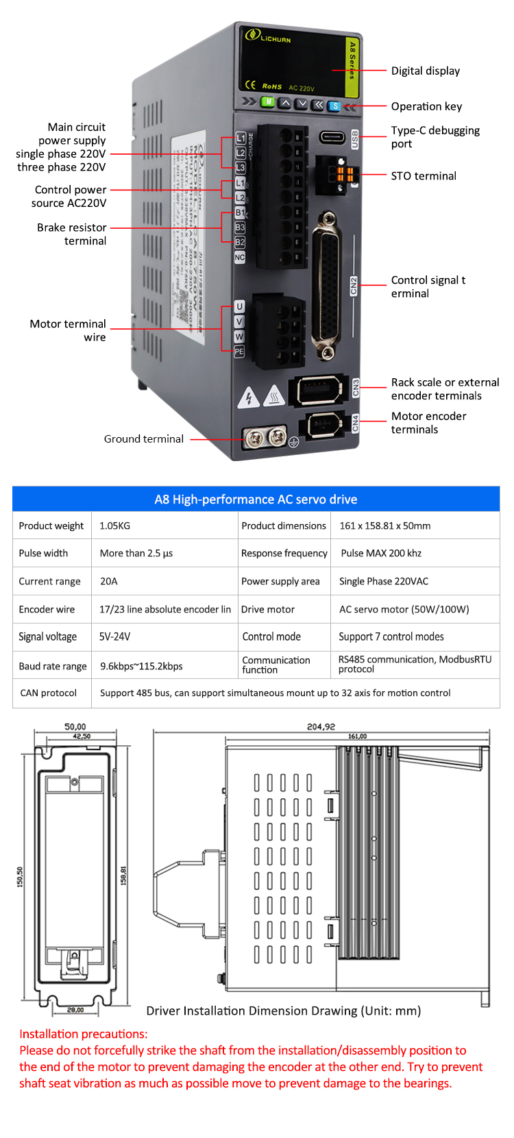 Novi izdelki Pulse/RS485 50W/100W 2500/3000RPM 17/23-bitni inkrementalni/absolutni kodirnik A8 Visoko natančen komplet gonilnikov servo motorja AC STO ABZ izdelan na Kitajskem s CE/ROHS proizvajalca LICHUAN®. Naša tovarna je slavni proizvajalec in dobavitelj kompleta gonilnikov AC servo motorja Pulse/RS485 50W/100W 2500/3000RPM A8 visoke natančnosti na Kitajskem. Naš izdelek je visokokakovosten/trajen/stabilno delovanje in nizka cena. In nudimo storitve po meri.