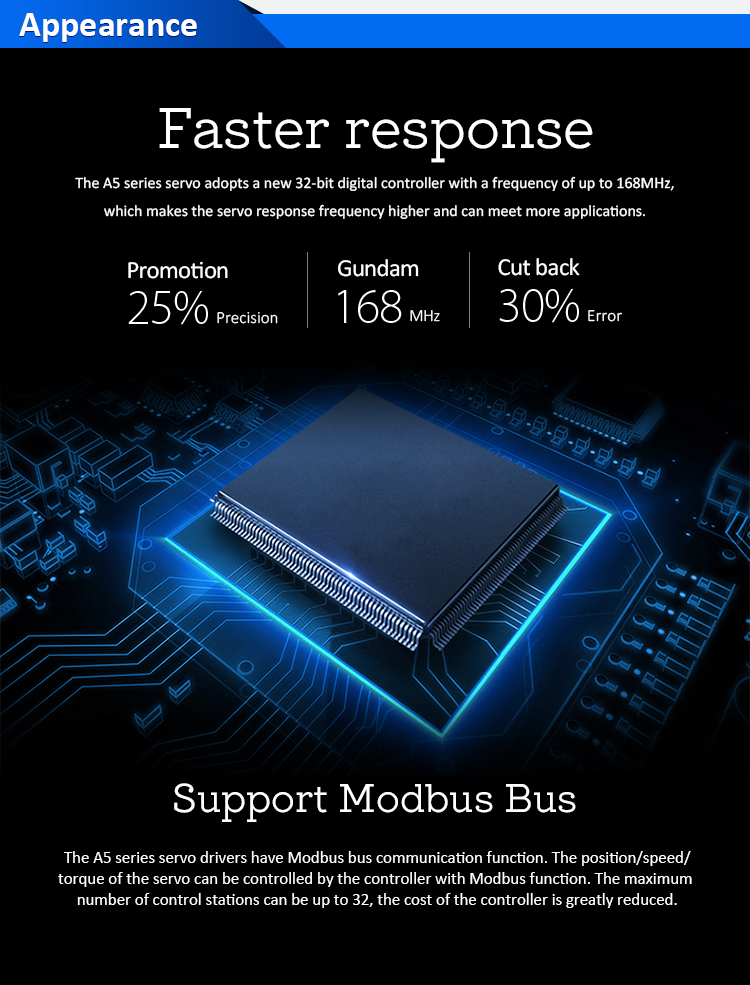 2. Podpira 7 načinov krmiljenja: položaj, hitrost, navor, položaj/navor, položaj/hitrost, hitrost/navor, položaj/hitrost/navor