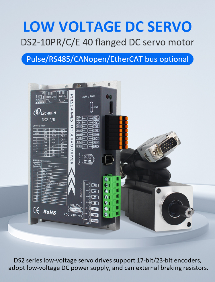 EtherCAT 2Phase Nema24 4-osni komplet gonilnikov za koračni motor z zaprto zanko DCNovi izdelki Pulse/RS485/CANopen/EtherCAT 40 FLANGED 100W 17/23-bitni inkrementalni/absolutni kodirnik Nizkonapetostni enosmerni servo motor gonilniki, izdelani na Kitajskem s CE/ROHS proizvajalca LICHUAN®. Naša tovarna je znani proizvajalec in dobavitelj kompleta gonilnikov enosmernega servo motorja Pulse/RS485/CANopen/EtherCAT 40 FLANGED 100W in dobaviteljev na Kitajskem. Naš izdelek je visokokakovosten/trajen/stabilno delovanje in nizka cena. In nudimo storitve po meri.