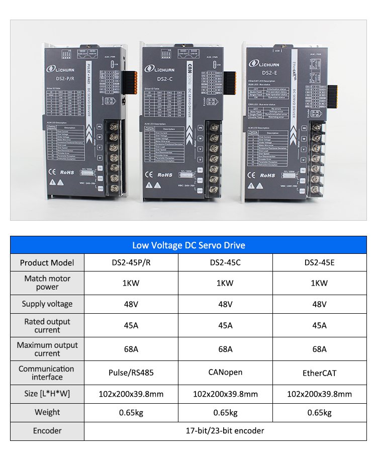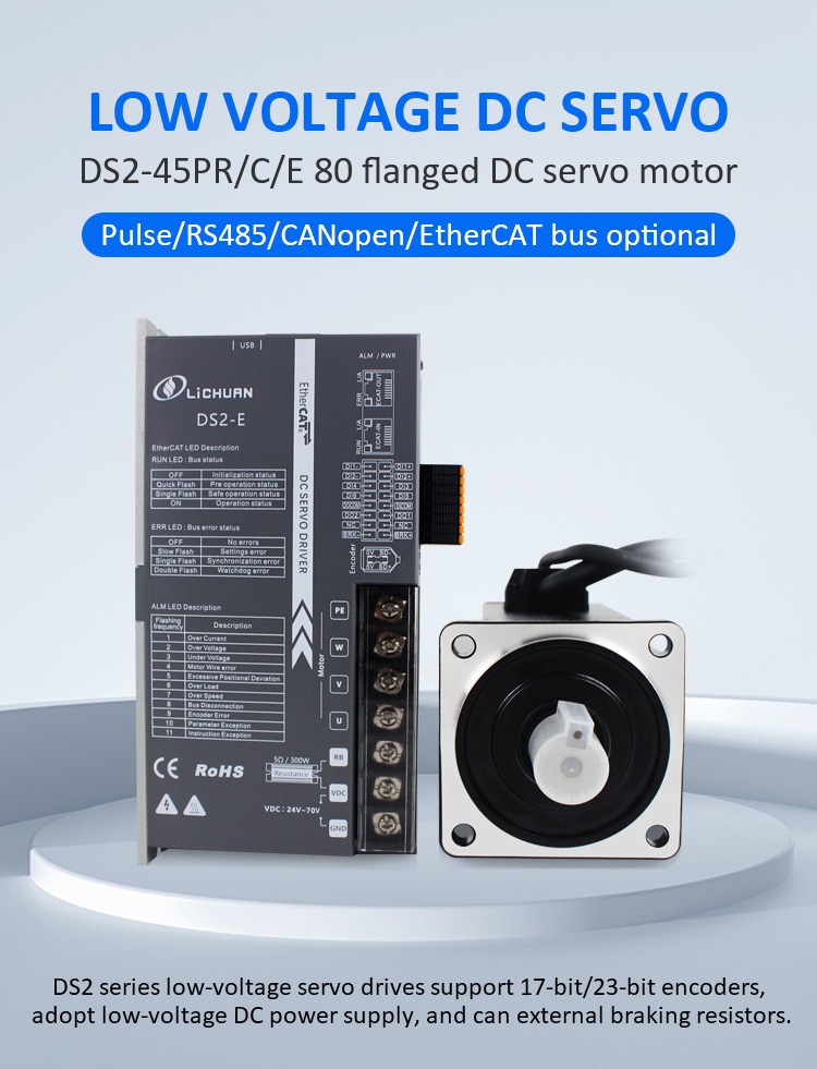 EtherCAT 2Phase Nema24 4-osni komplet gonilnikov za koračni motor z zaprto zanko DCNovi izdelki Pulse/RS485/CANopen/EtherCAT 80 FLANGED 1KW/1000W 17/23-bitni inkrementalni/absolutni kodirnik Nizkonapetostni enosmerni servo motor gonilniki, izdelani na Kitajskem s CE/ROHS proizvajalca LICHUAN®. Naša tovarna je znani proizvajalec in dobavitelj kompleta gonilnikov enosmernega servo motorja Pulse/RS485/CANopen/EtherCAT 80 FLANGED 1KW/1000W na Kitajskem. Naš izdelek je visokokakovosten/trajen/stabilno delovanje in nizka cena. In nudimo storitve po meri.