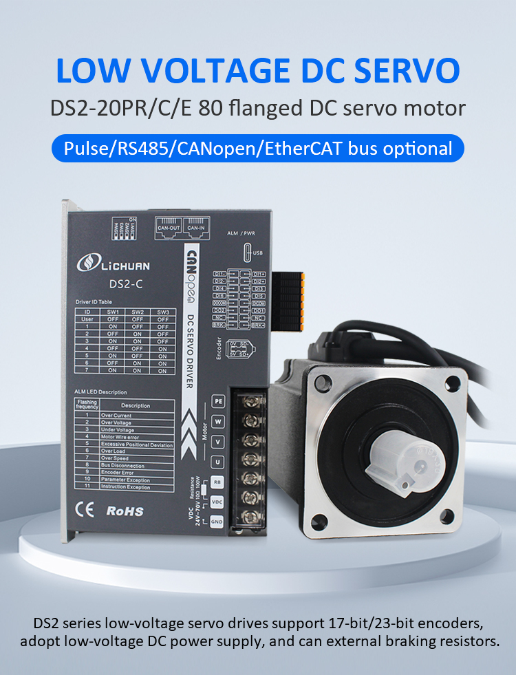 EtherCAT 2Phase Nema24 4-osni komplet gonilnikov za koračni motor z zaprto zanko DCNovi izdelki Pulse/RS485/CANopen/EtherCAT 80 FLANGED 750W 17/23-bitni inkrementalni/absolutni kodirnik Nizkonapetostni enosmerni servo motor gonilniki, izdelani na Kitajskem s CE/ROHS proizvajalca LICHUAN®. Naša tovarna je slavni proizvajalec in dobavitelj kompleta gonilnikov enosmernega servo motorja Pulse/RS485/CANopen/EtherCAT 80 FLANGED 750 W na Kitajskem. Naš izdelek je visokokakovosten/trajen/stabilno delovanje in nizka cena. In nudimo storitve po meri.